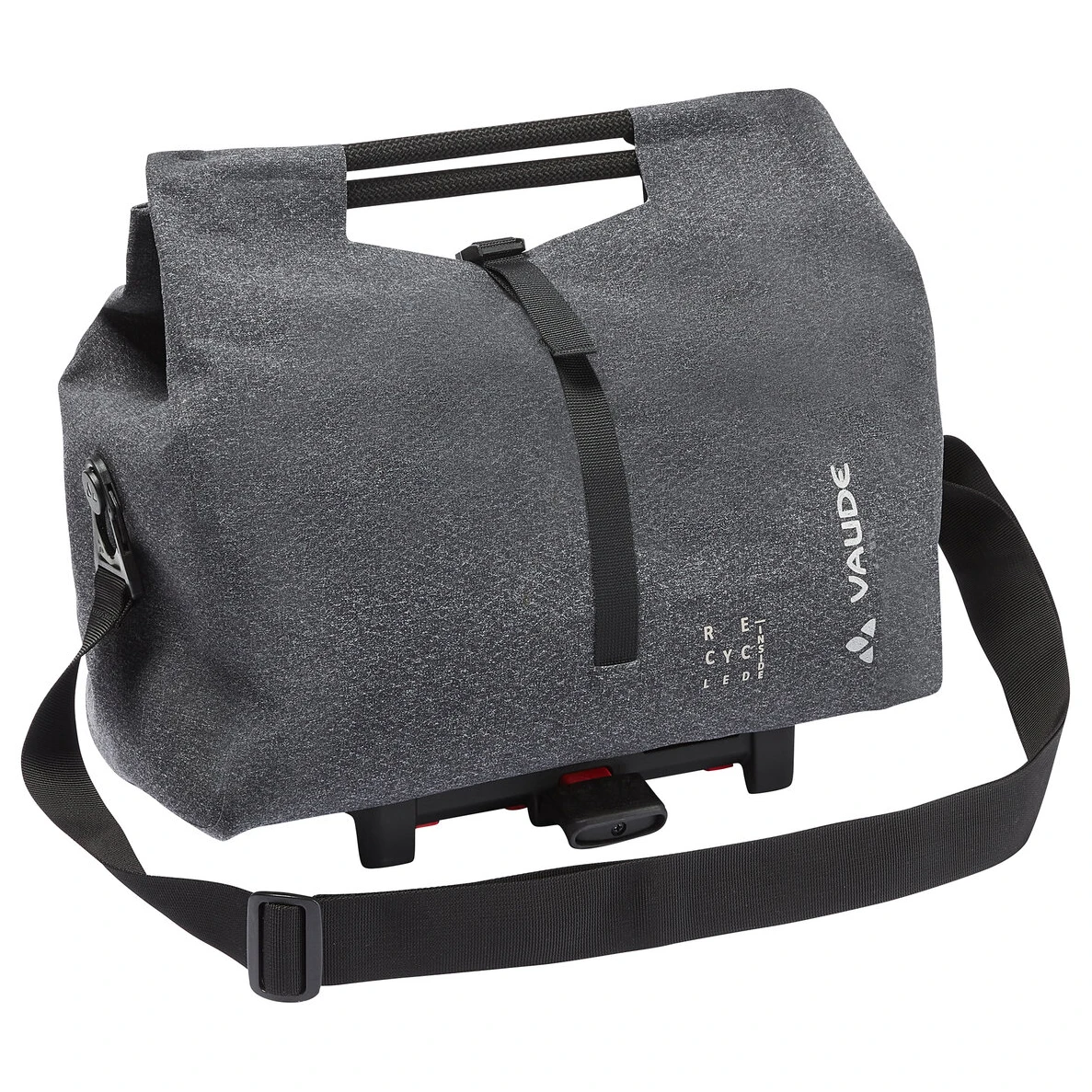 Du willst auf den Wochenmarkt, hast aber keine Lust, Deine Einkäufe in den Rucksack zu stopfen? Dann ist der ReCycle Shopper (Uniklip) 15 von Vaude genau der Richtig für Dich! Die Gepäckträgertasche bietet mit 15 Litern ausreichend Platz für Deine Einkäufe. Mit dem praktischen Rollverschluss kannst Du die Tasche je nach Inhalt auf verschiedenen Höhen verschließen. Durch das robuste und wasserdichte Außenmaterial bringst Du Deinen Inhalt sicher und trocken nach Hause.